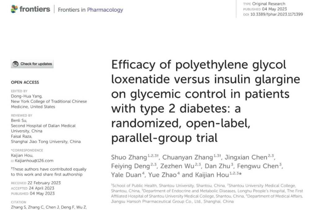 近日,国际知名药理学期刊《药理学前沿》(Frontiers in Pharmacology)在线发表了ob體育孚来美®(聚乙二醇洛塞那肽注射液)临床研究论文,首次使用动态血糖监测系统(CGM)评价洛塞那肽降糖疗效的研究数据显示了孚来美®卓越的降糖疗效和良好的安全性。