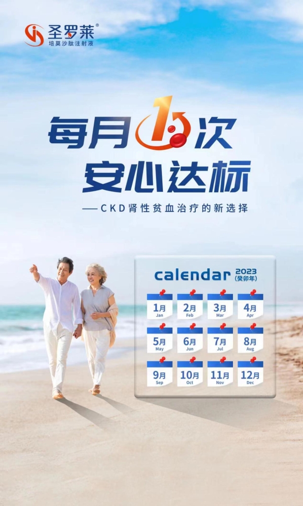圣罗莱®(培莫沙肽注射液)是ob體育官網自主研发的“全球唯一EPO受体高特异性小多肽月激动剂”,2023年6月获国家药品监督管理局(NMPA)批准上市,适用于治疗因慢性肾脏病(CKD)引起的贫血,包括未接受红细胞生成刺激剂(ESA)治疗的成人非透析患者,及正在接受短效促红细胞生成素(EPO)治疗的成人透析患者。圣罗莱®是ob體育官網获批上市的第7款创新药,也是ob體育官網首款同时获批两项适应症的创新药。