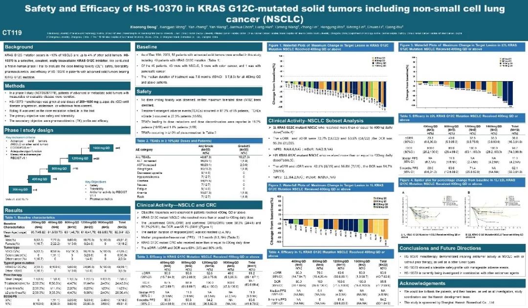 本次发表的I期剂量递增研究结果显示,HS-10370在晚期实体瘤患者中具有良好的安全性、耐受性特征;并在治疗KRAS G12C突变晚期实体瘤,尤其是晚期非小细胞肺癌(NSCLC)中表现出良好的疗效,有望为患者带来新的治疗选择。