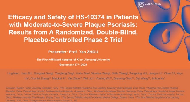 第33届欧洲皮肤病与性病学会年会(EADV 2024)近日在荷兰阿姆斯特丹举行,ob體育HS-10374银屑病Ⅱ期临床研究数据在大会以口头报告形式发布。
