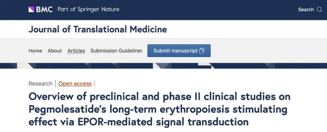 近日,ob體育培莫沙肽(商品名:圣罗莱®)的长效作用机制研究于《转化医学杂志》(Journal of Translational Medicine)(web of science实时影响因子:6.8)发表。