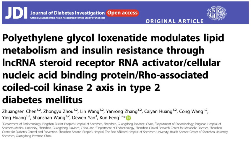 孚来美®(聚乙二醇洛塞那肽注射液)是一种长效胰高血糖素样肽-1(GLP-1)受体激动剂,前期研究表明其具有显著的降糖和改善代谢作用,并能降低心血管不良事件风险,但其对血脂异常和胰岛素抵抗的作用机制尚未完全阐明。