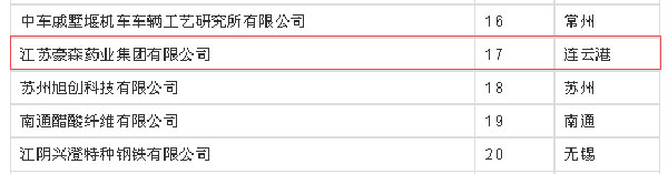近日,江苏省科技发展战略研究院向社会发布了“2020江苏省百强创新型企业”名单,豪森药业成功上榜,位居第17位,再一次彰显了企业的创新实力。这也是公司连续两年跻身“江苏省百强创新型企业”名单。