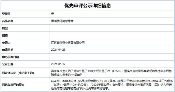 近日,ob體育(以下简称“豪森药业”)自主研发的1类创新药阿美乐®(甲磺酸阿美替尼)一线治疗EGFR突变阳性局部晚期或转移性非小细胞肺癌(NSCLC)上市许可申请获国家药品监督管理局受理,用于具有表皮生长因子受体外显子19缺失或外显子21(L858R)置换突变的局部晚期或转移性非小细胞肺癌成人患者的一线治疗,同时被国家药品监督管理局药品审评中心纳入拟优先审评品种公示名单。此为阿美乐®第二个适应症。