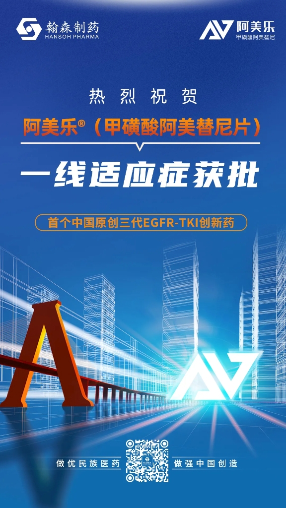 2021年12月16日,ob體育官網集团有限公司(股票代码:HK.03692)(以下简称“ob體育官網”或“公司”)宣布,其附属公司豪森药业自主研发的1类创新药阿美乐®(甲磺酸阿美替尼片)用于具有表皮生长因子受体(EGFR)外显子19缺失或外显子21(L858R)置换突变阳性的局部晚期或转移性非小细胞肺癌(NSCLC)成人患者的一线治疗适应症,获得国家药品监督管理局(NMPA)颁发的《药品注册批件》。此次为阿美乐®获批的第二个适应症,将进一步丰富和完善公司的抗肿瘤产品线布局。数据显示,阿美乐®在用于一线治疗EGFR敏感突变阳性局部晚期或转移性NSCLC成人患者中安全性和有效性优势明显,将正式开启中国原创三代EGFR-TKI一线治疗全新时代。